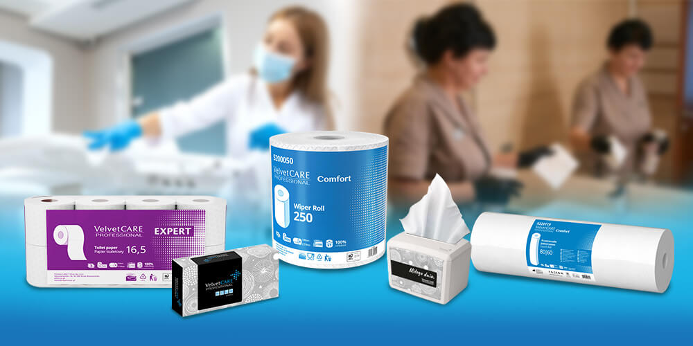 Our range of products addressed to professionals includes both the widely recognized VelvetCARE Professional and HORECA brands, and budget-friendly products. We also deliver the option of supplying private label products for contracted customers.